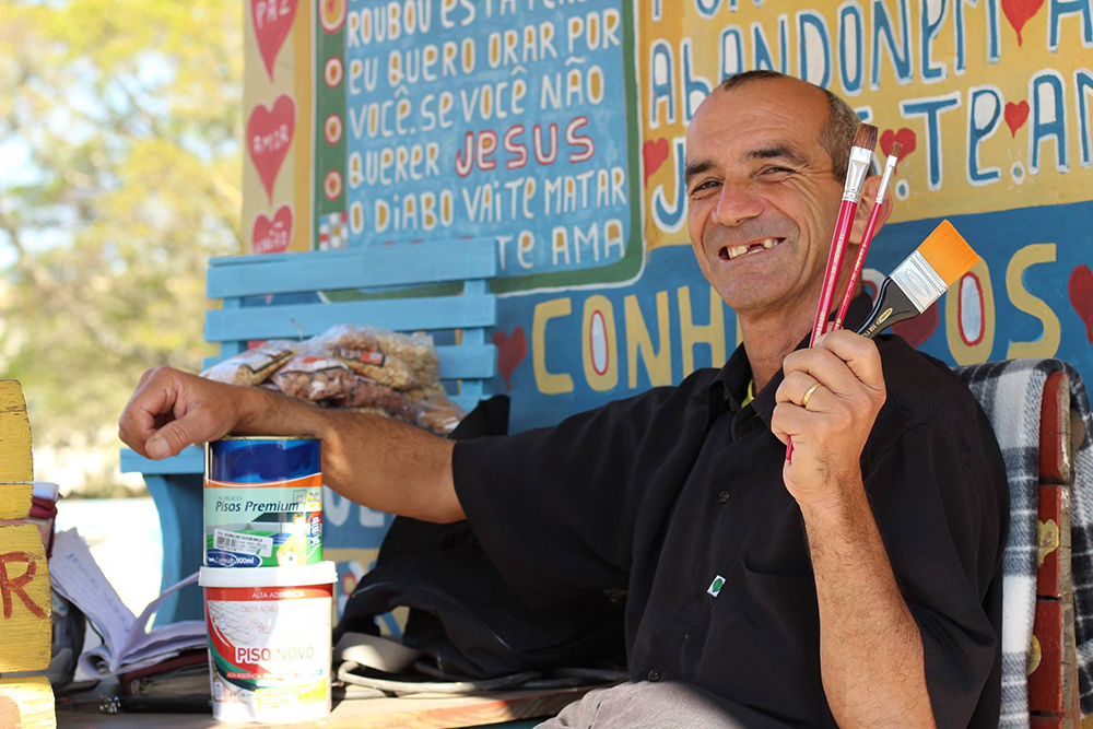 Seu sonho é reconstruir o parque que existia no local e ter um área para que as crianças possam brincar. Por isso, além da venda de sucos e guloseimas, ele também vende mudas de verduras para juntar dinheiro. Quem passa por lá, também pode ver a latinha e uma placa pedindo doações para a compra de tintas, para que assim ele possa continuar espalhando mensagens de luz. Sua tenda vende mais que verduras e doces. Ela distribui amor. Lá, ele recebe os que precisam de uma palavra que carinho e força para seguir com a vida.
